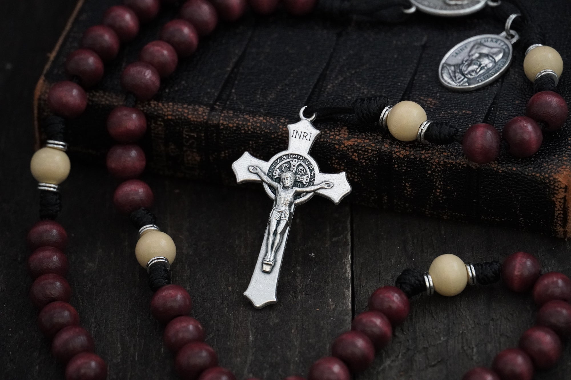 Our men’s rosaries combine masculine colors and rugged materials to create spiritual weapons that are both pleasing to look at and able to withstand repeated use. Each rosary is made with great attention to detail and with the goal of inspiring men to pray.