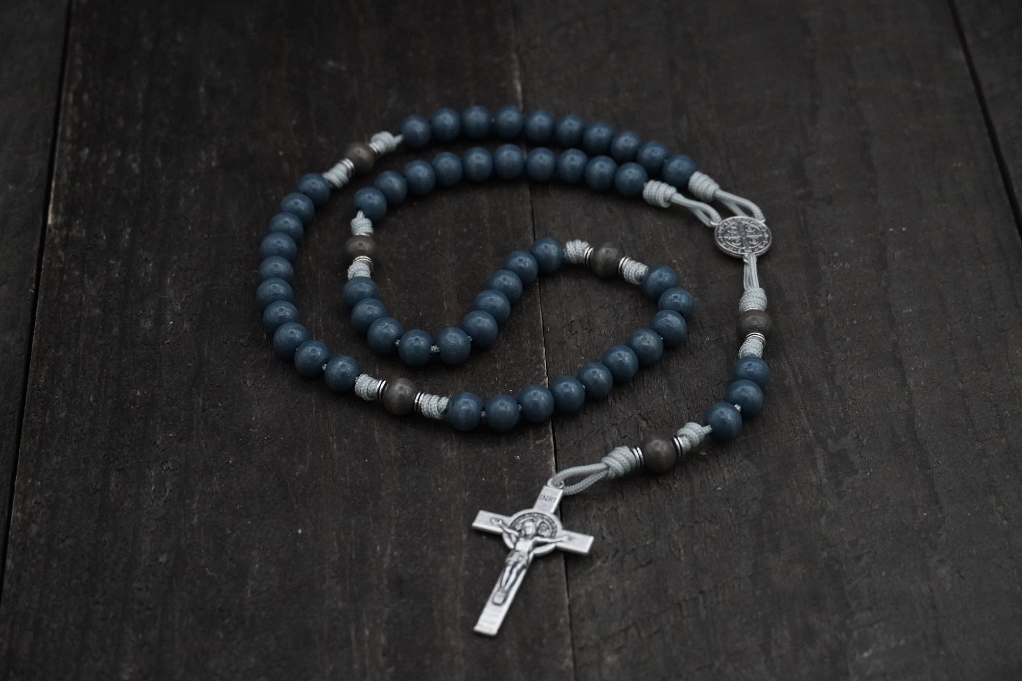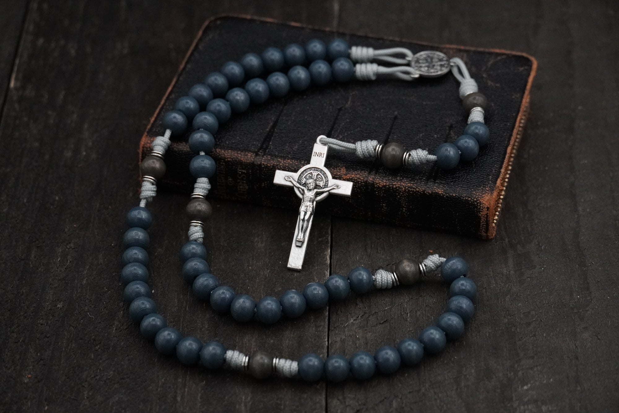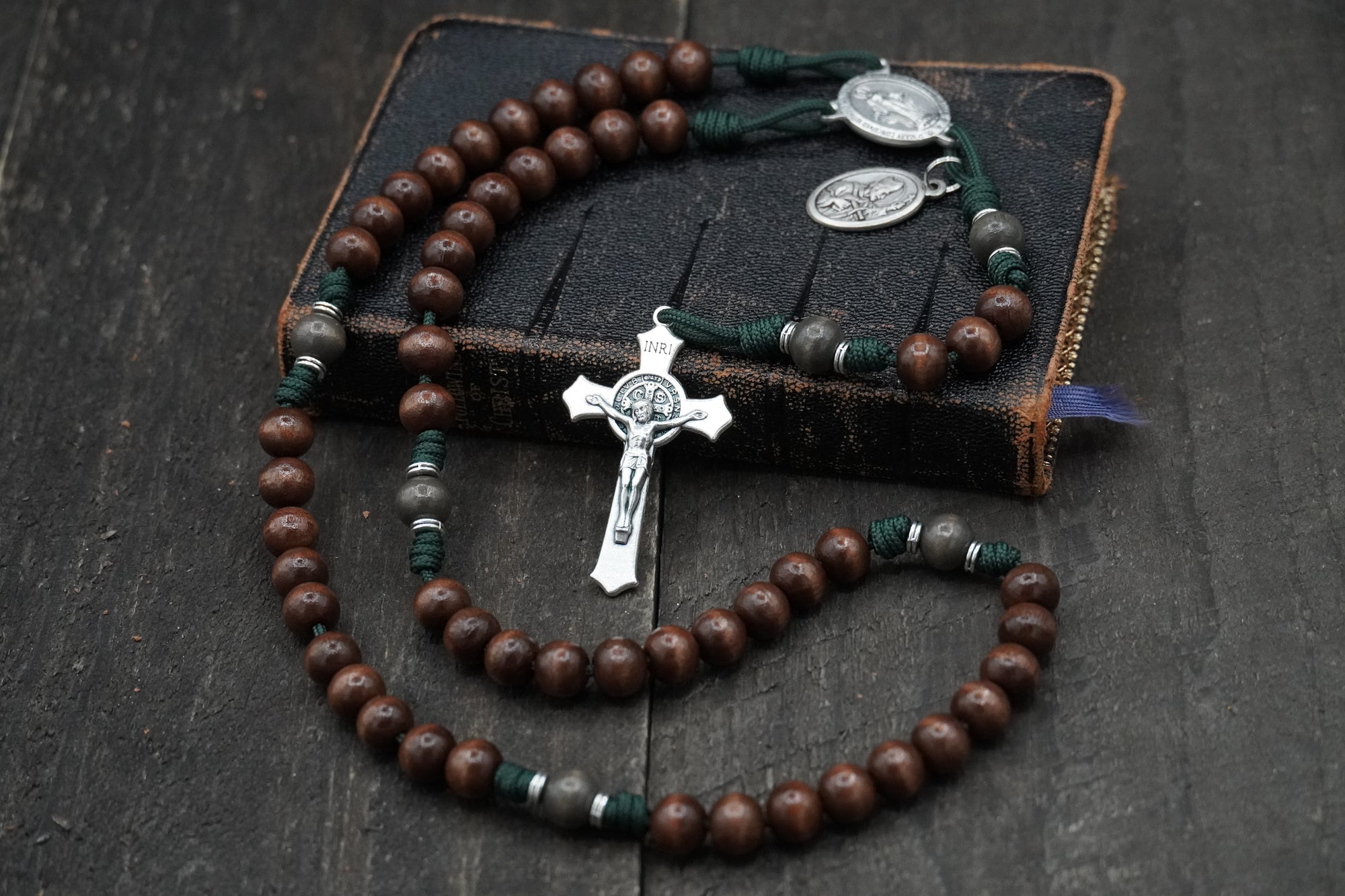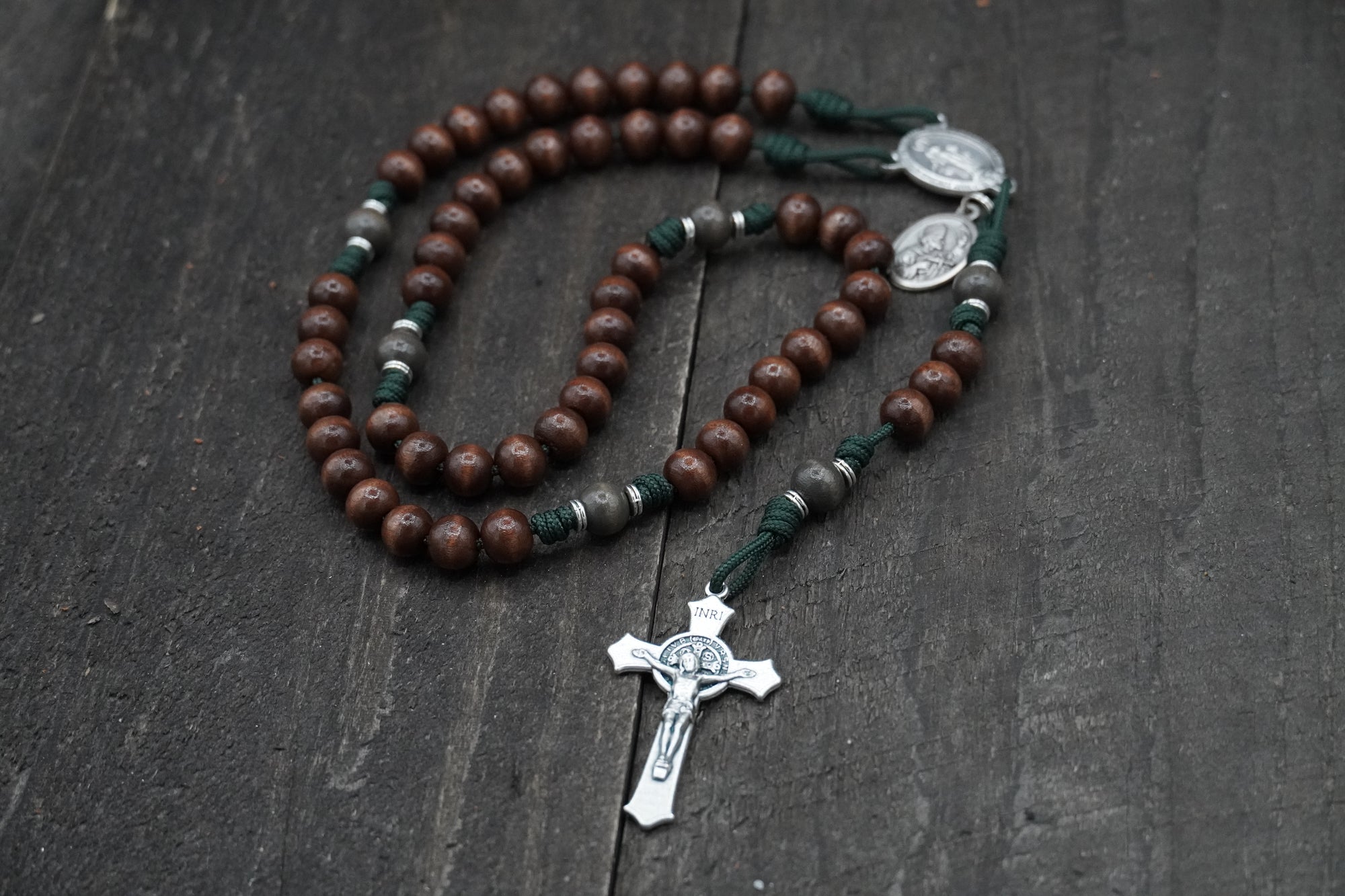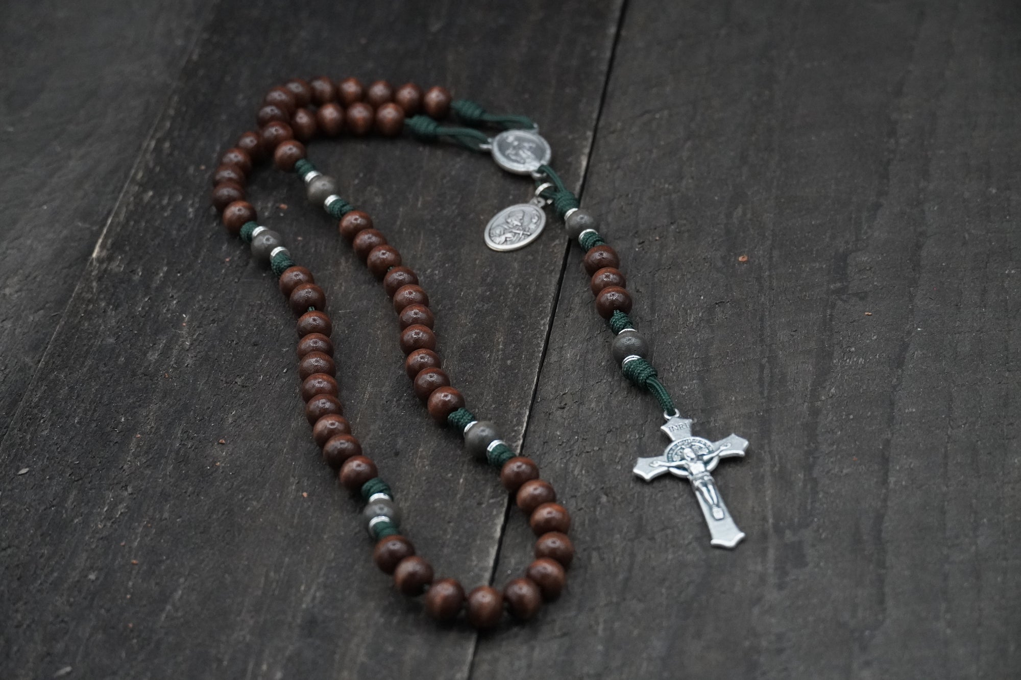 We like color and prefer the look and feel of wooden beads over plastic or glass ones. Our founder learned the art of coloring and finishing wood from working in a guitar shop and had the idea to do the same thing with wood beads for rosaries. The result? All of our bead colors are formulated by us using the same techniques that our founder used during his time building and refinishing guitars.