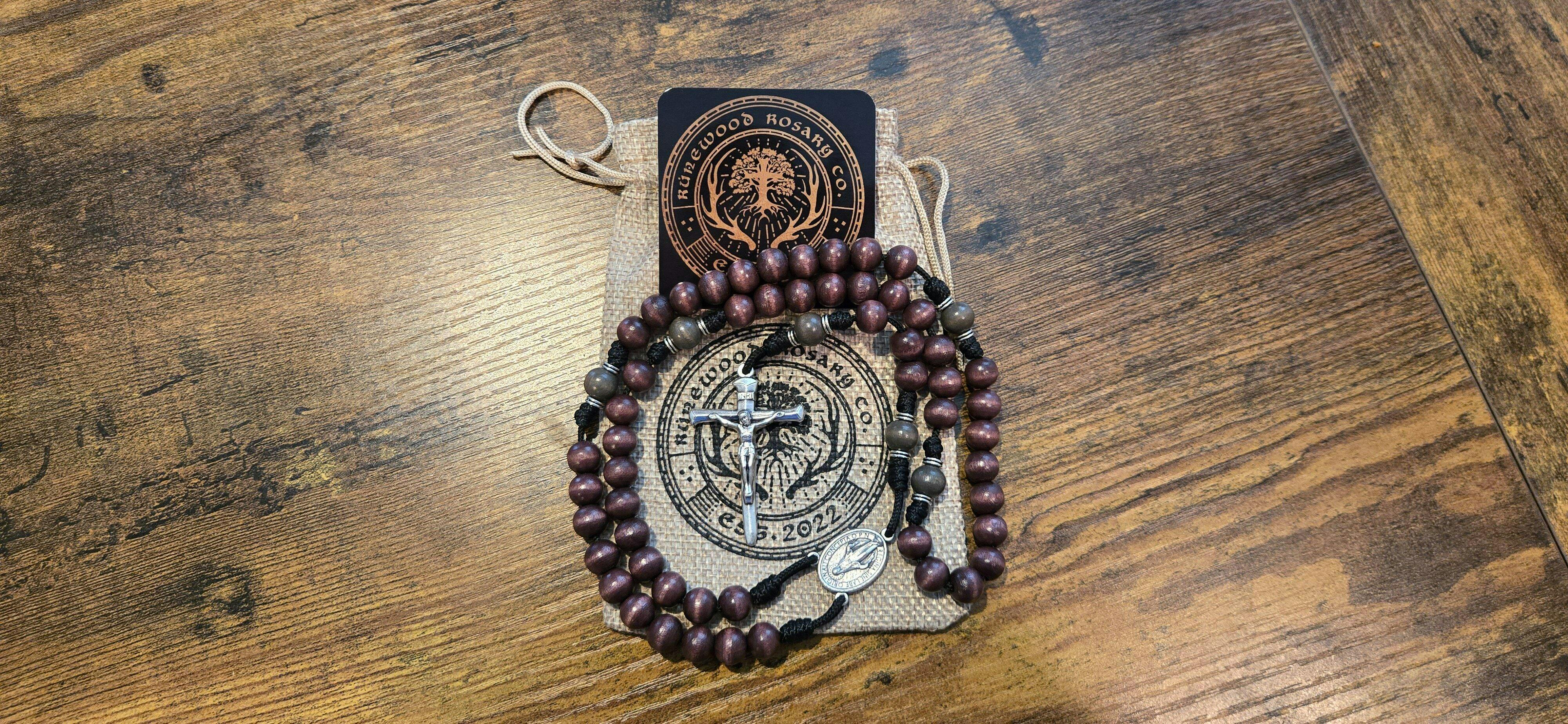 The Durable Rosary is a powerful weapon against spiritual adversity, as many Saints have taught throughout history. Made with strong black paracord and exclusive purple and charcoal wooden beads, this rosary is built to withstand the challenges of daily prayer. The striking oxidized silver nails crucifix and Miraculous Medal centerpiece make this a formidable tool for your spiritual journey. Compact and stout, this rosary is crafted in Fargo, ND, to inspire Catholics to pray the rosary as requested by Our Lady of Fatima.